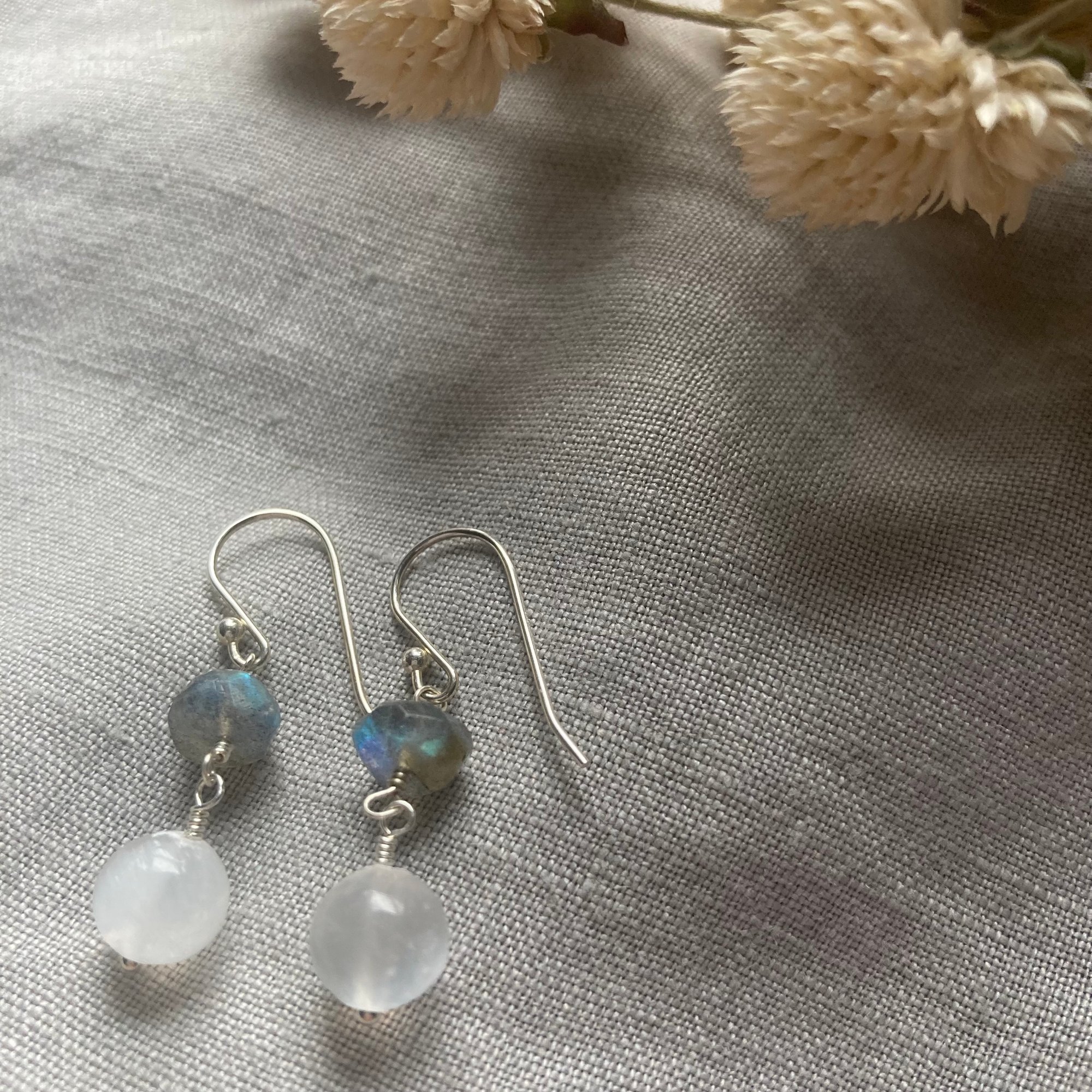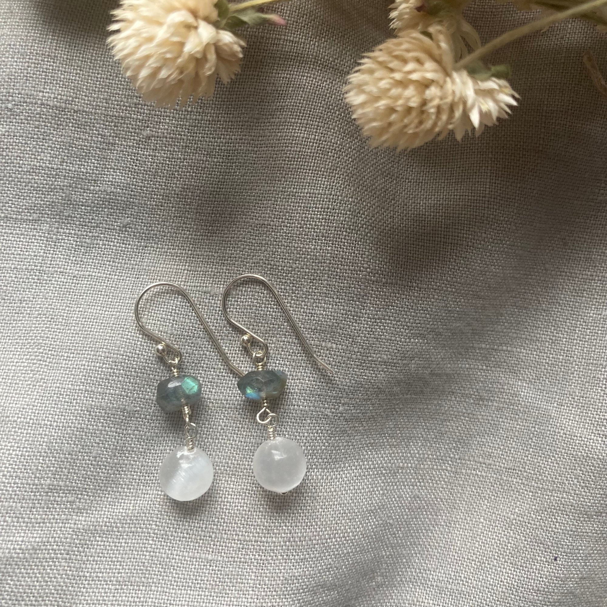 Materials: sterling silver, selenite, labradorite
